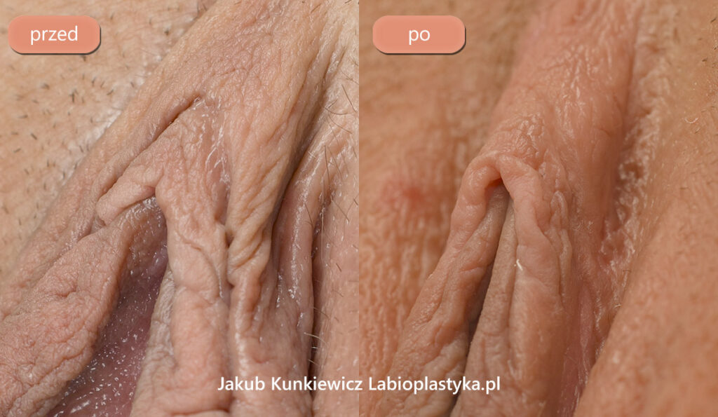 Prezentujemy przykład labioplastyki deepitelizacyjnej wykonanej ze wskazań funkcjonalnych i estetycznych u Pacjentki o przerastających ponad poziom warg sromowych większych zarówno wargach sromowych mniejszych jak i napletku łechtaczki. Zdjęcia “PO” zostały wykonane nieco ponad 2 tygodnie po zabiegu pierwotnym. Należy zaznaczyć, że gojenie przebiega bez najmniejszych komplikacji. Kolejną porcję zdjęć opublikujemy 2-3 miesiące po zabiegu celem prezentacji jak zmienia się obrzęk tkanek i całościowy wygląd sromu na przestrzeni czasu po zabiegu labioplastyki.